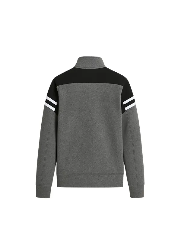 Athletic Fleece Jacket with Black Panels & White Stripes