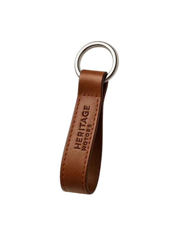 Brown Leather Strap Keychain with Heritage Motors Logo