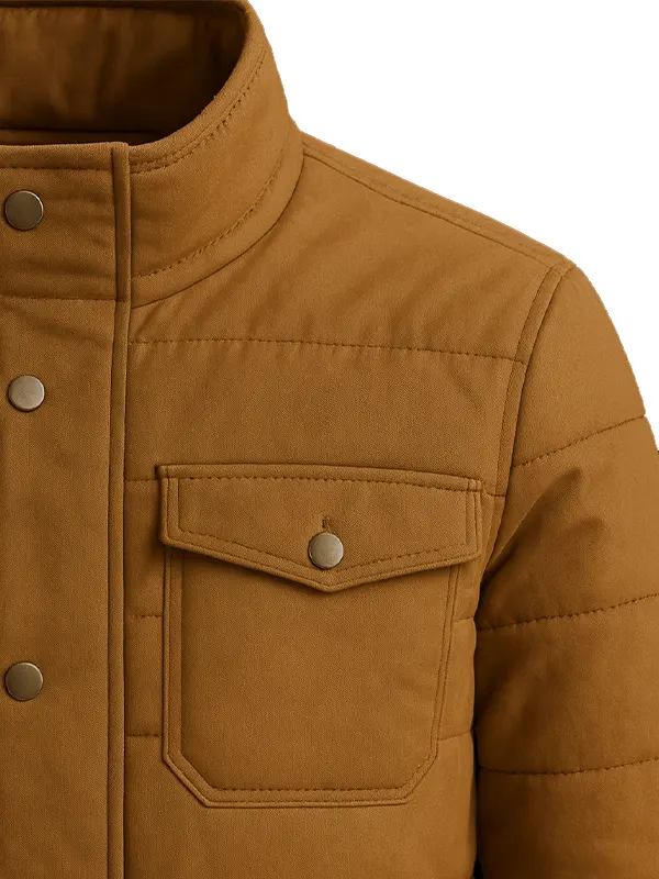 Wholesale brown leather and canvas motorcycle jackets are ideal for businesses seeking durable and adaptable products. The wholesale waxed canvas down insulated jacket design provides warmth, and the wholesale water-resistant canvas biker jacket keeps rain and other elements at bay.