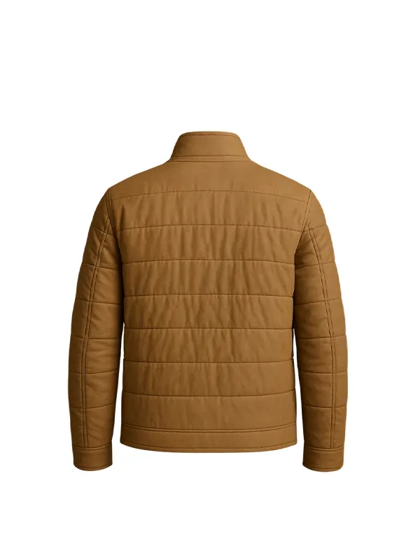 Brown Waxed Canvas Quilted Insulated Down Cruiser Biker Leather Jacket