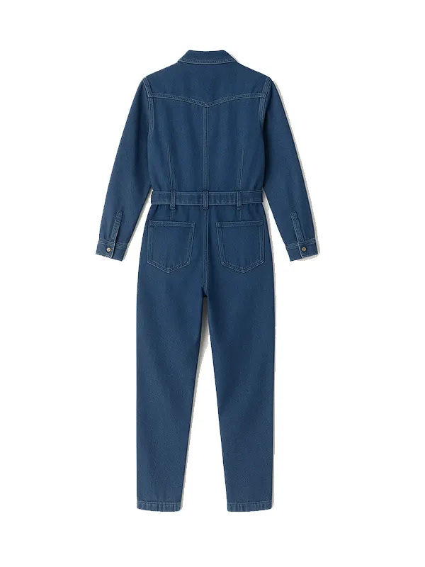 Classic Blue Denim Jumpsuits with Zipper, Belt & Pockets