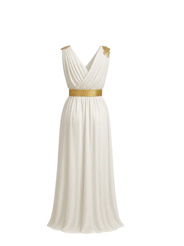 Elegant Cosplay White Gown Greek Goddess Costume with Gold Waistband