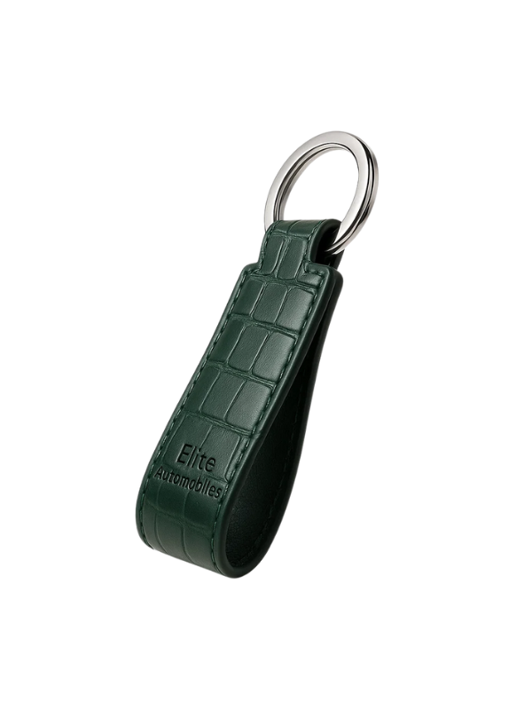 Green Crocodile Leather Keychain with Elite Automobiles Logo