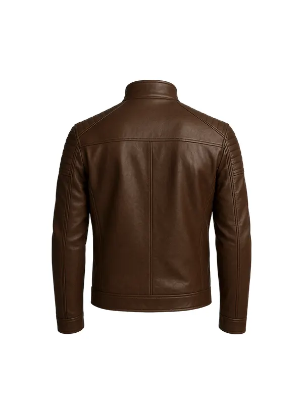 Mens Quilted Shoulder Coffee Brown Biker Leather Jacket