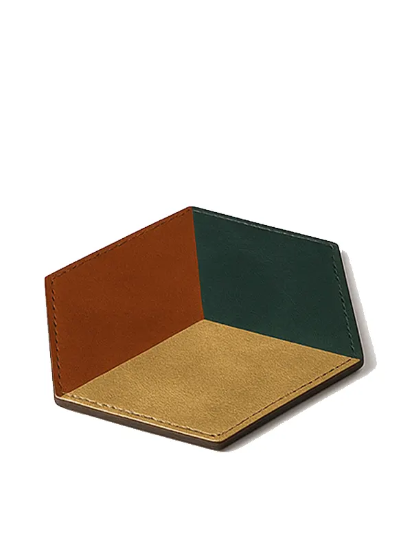Premium Patchwork Design Personalized Hexagon Leather Tea Coasters With holder