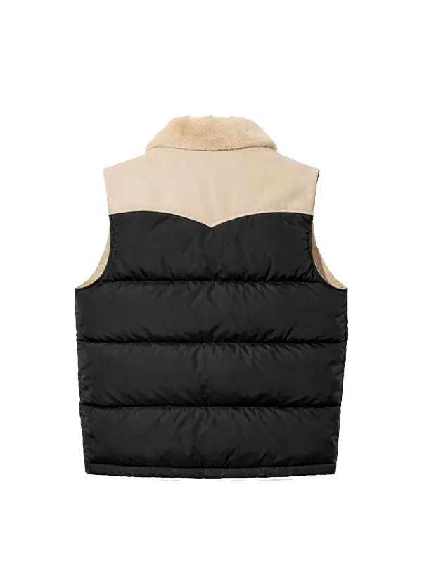 Wholesale Black and Beige Puffer Vest with Faux Fur Collar