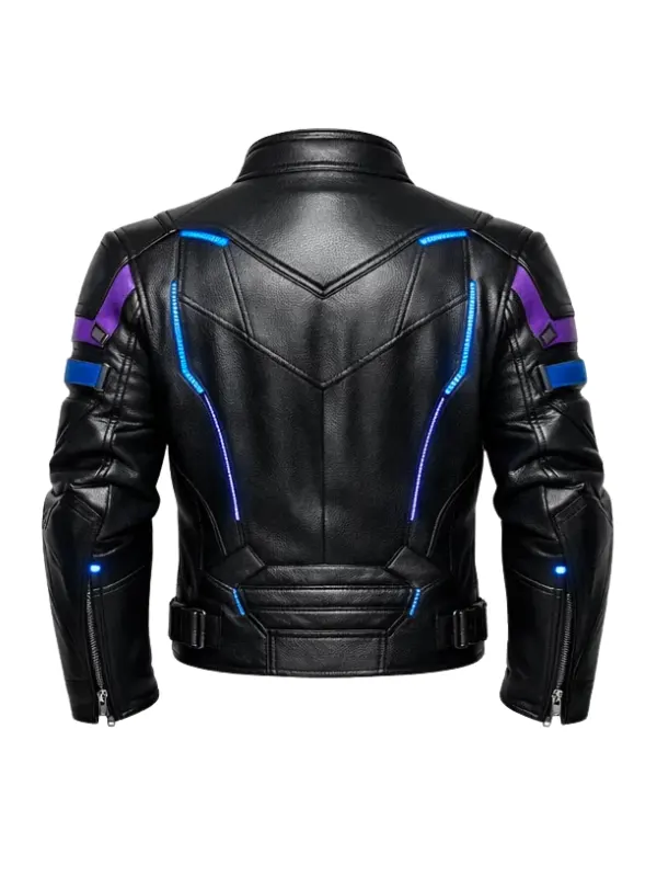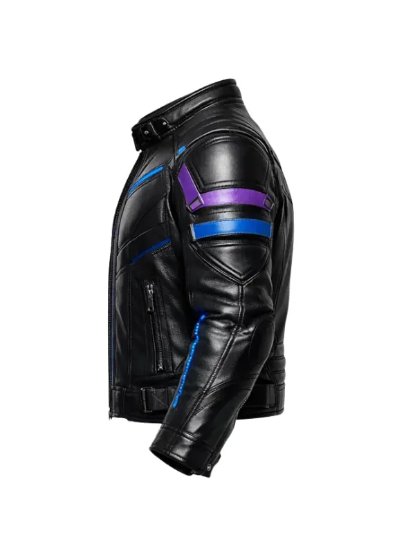 This jacket has a locked front zip, working pockets to accommodate daily needs, ds and a structured bomber style that adds masculine cuteness. The leather used is of high quality, and the stitching is done with a lot of detail, which contributes to the wearable quality being long-lasting,g and the addition of a cyberpunk appearance makes it a fashionable addition. It includes a balance of comfort, durability, and distinguished design.