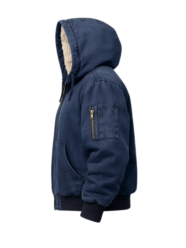 Wholesale Deep Navy Duck Canvas Sherpa-Lined Hooded Active Jacket