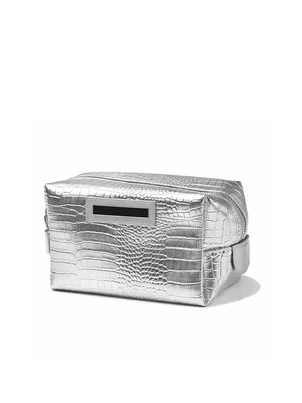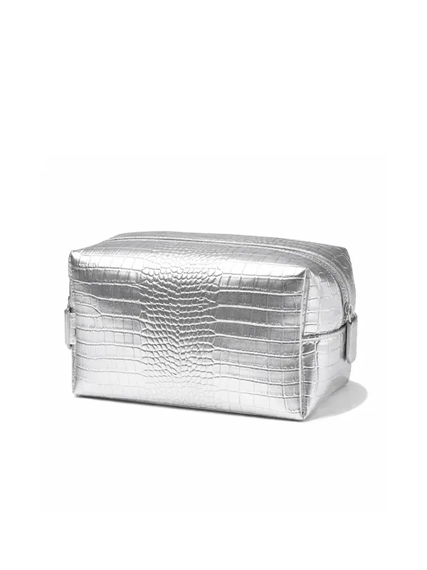 • Silver Crocodile Pattern Embossed Cosmetic Bag