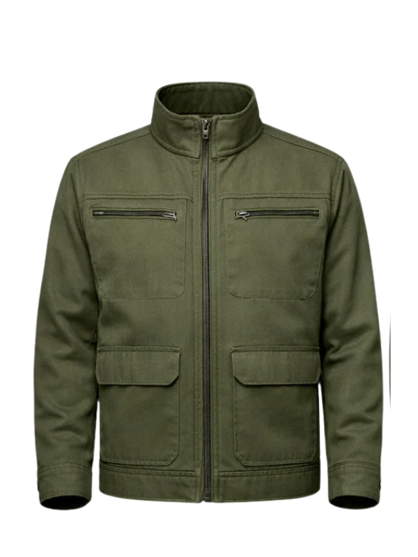 In Rays creations, we specialize in the production of trustouterwear that is designed to be used. The jacket has many secure pockets, enabling the tool and other necessities of the user to be conveniently stored. The rich tone gives this moss green utility jacket a contemporary touch that will make this jacket both an office jacket and a regular jacket.